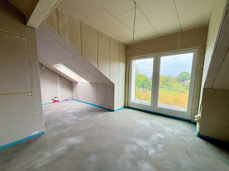 Der Innenausbau schreitet zügig voran: Die Trockenbauarbeiten sind weitgehend abgeschlossen, und die Vorbereitungen für den Einbau der Fußbodenheizung stehen kurz vor dem Abschluss. Das Dach ist fertiggestellt, die Photovoltaikanlage bereits montiert. Derzeit werden die Fassadenarbeiten finalisiert.