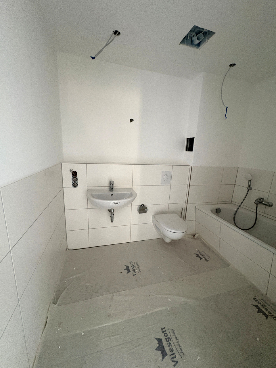 Die Trockenbauarbeiten sind abgeschlossen, und die Malerarbeiten gehen zügig voran. Parallel dazu haben die Fliesenarbeiten in den Bädern begonnen. Die Vorbereitungen für die Fußbodenarbeiten wurden ebenfalls erfolgreich abgeschlossen.